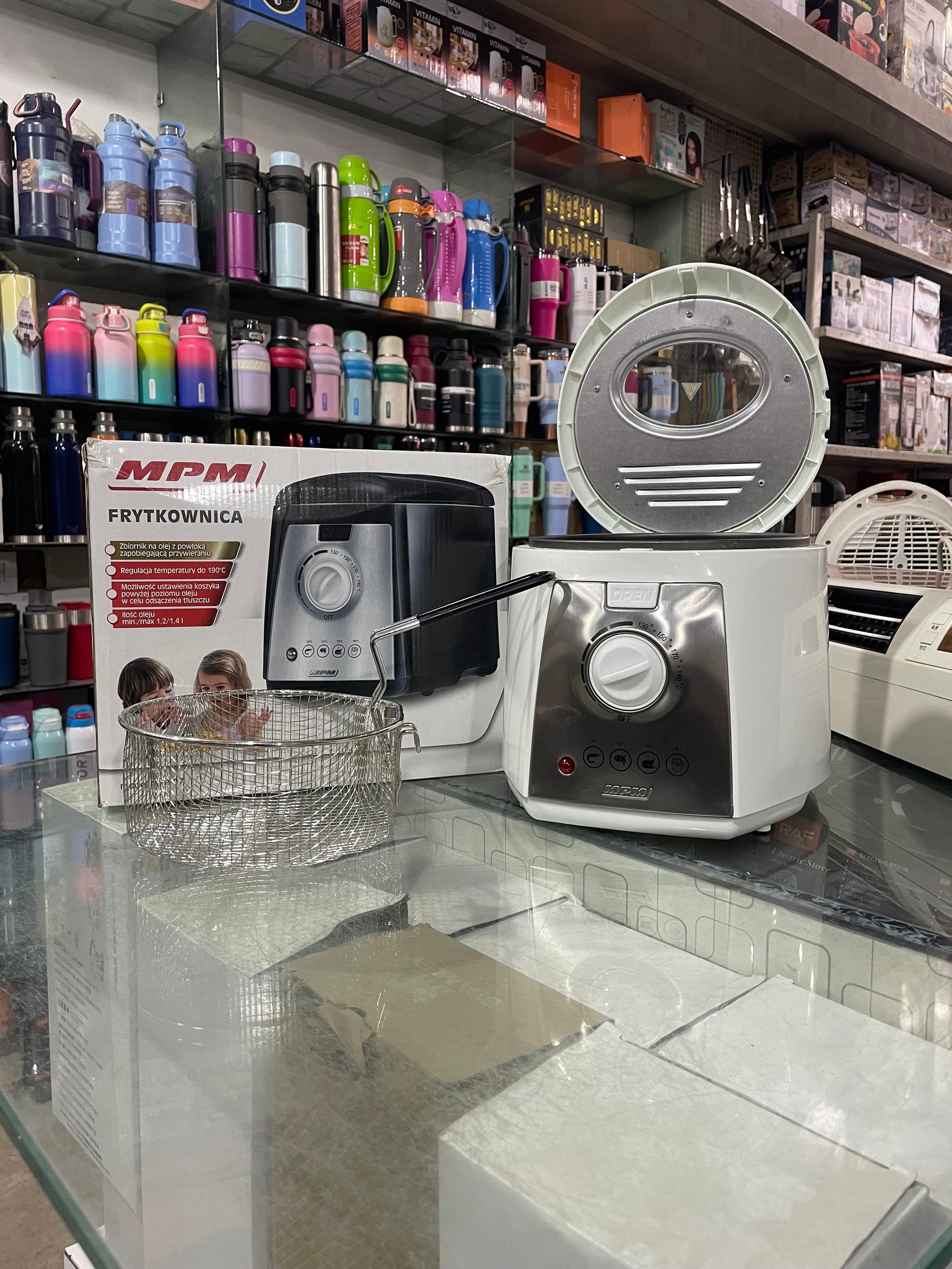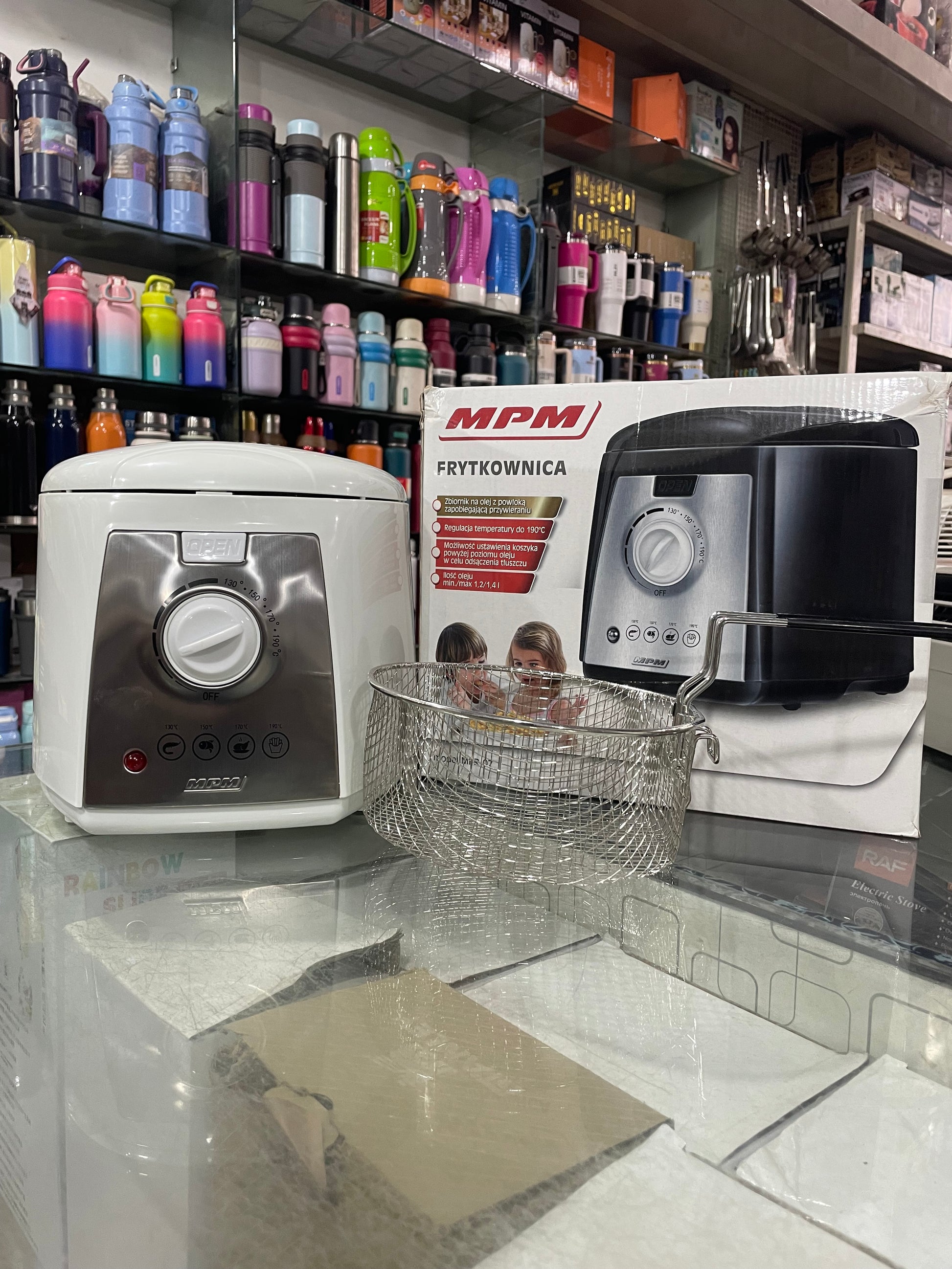 MPM MFR-07 Compact Electric Deep Fryer, 1.5L Oil Capacity, Adjustable Thermostat up to 190°C, 1200W, Non-Stick Bowl, Splash-Proof Lid